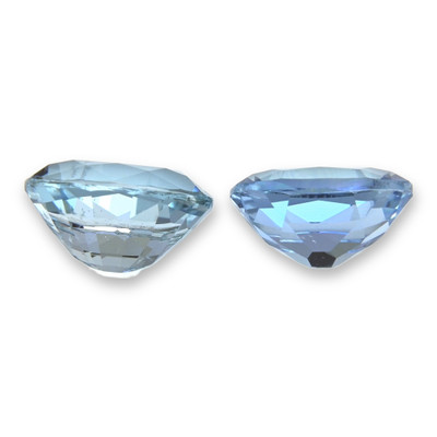 Pair - Oval Aquamarine "Blue" 7.40 x 5.50 & 7.10 x 5.10mm. HEATED.